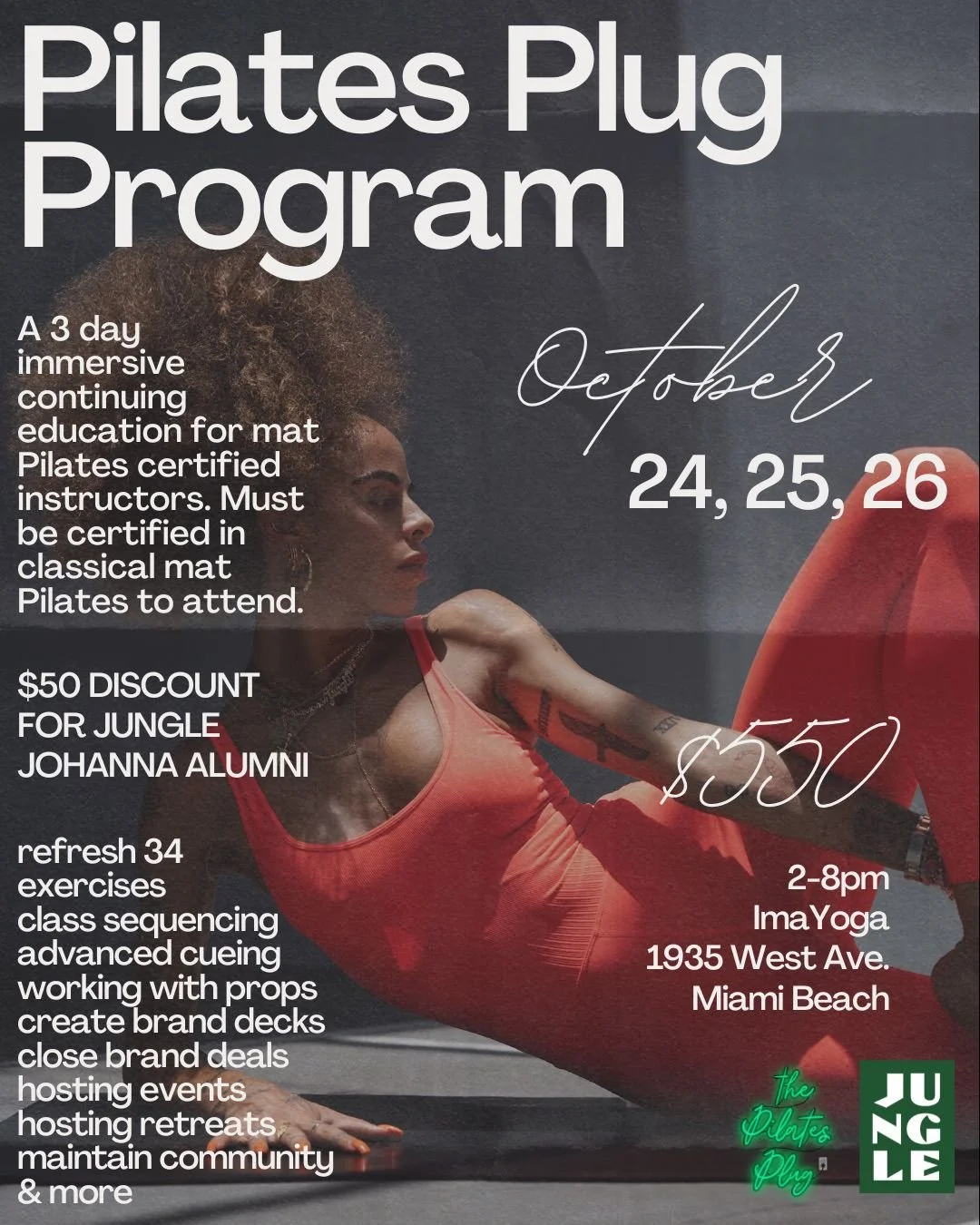 Pilates Plug Program Jungle Johanna is offering a continuing education workshop for certified mat Pilates instructors Reserve Your Spot!