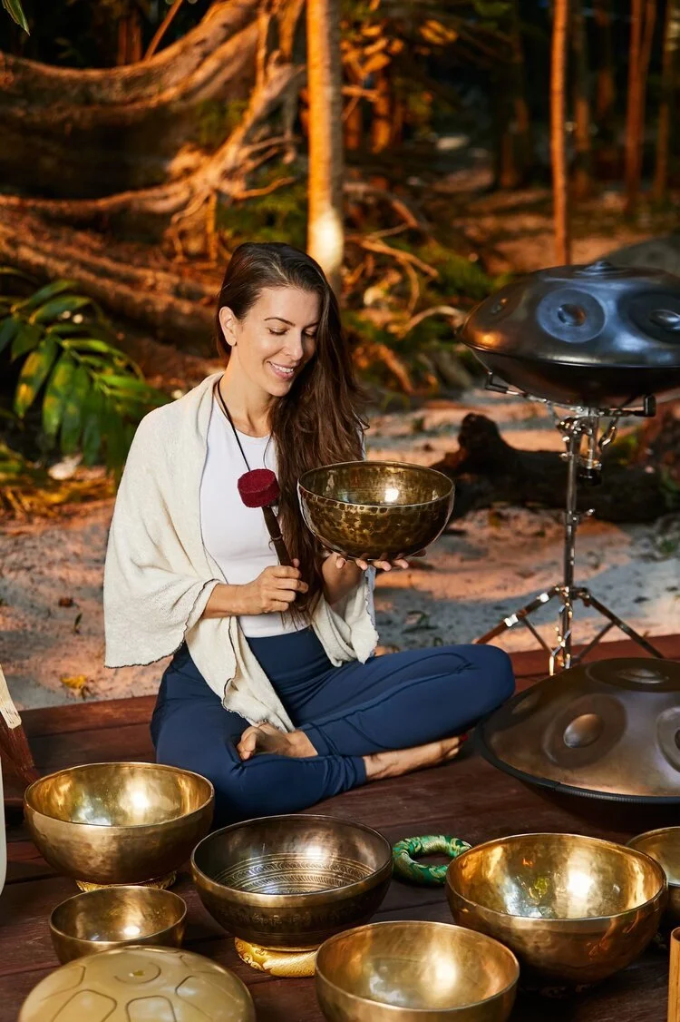 Michelle Berlin brings two decades of experience in the wellness industry as a local yoga teacher and sound practitioner. Over the past 20 years, she has traveled to 52 countries, immersing herself in the ancient wisdom of various shamanic cultures, eastern traditions, and yogic practices. Her passion for healing arts took her to Nepal, where she studied under Tibetan Monks. In the Himalayas, she apprenticed with a fifth-generation sound shaman in a quaint village in Annapurna, absorbing invaluable knowledge that deeply informs her offerings.